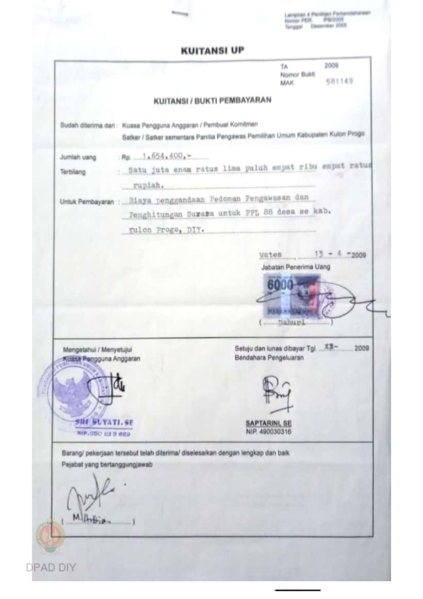Laporan Keuangan Panwaslu Propinsi DIY semester I tanggal 30 Juni 2009, Laporan Kinerja dan Keuangan Panwaslu Kabupaten Sleman Triwulan I Bulan Januari s.d Maret 2009 dan Surat Pengesahan Daftar Isian Pelaksanaan Anggaran Tahun 2009 No 0004.0/999-06.1/-/2009