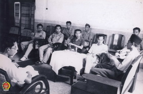 Panglima Besar Jenderal Soedirman sedang memberikan penjelasan kepada peserta Konferensi Pers.