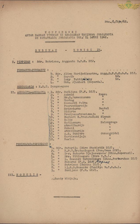 Surat dari Komisi II DPRD DIY, tentang Kesimpulan Komisi II DPRD DIY pada Konferensi kerja antar Pemerintah Daerah Tk II se DIY dengan Pemda DIY di Kota Praja Jogjakarta.