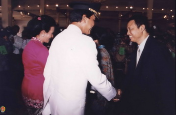 Item Bpad.Otda.F1.IV.167 - Sri Sultan HB X didampingi GKR. Hemas sedang bersalaman dengan Dirjen PUOD Dr. Ryas Rasyid setelah acara Pelantikan Gubernur
